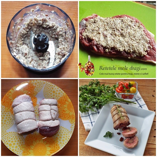 Mod de preparare Rulada din piept de rata cu nuci si stafide: